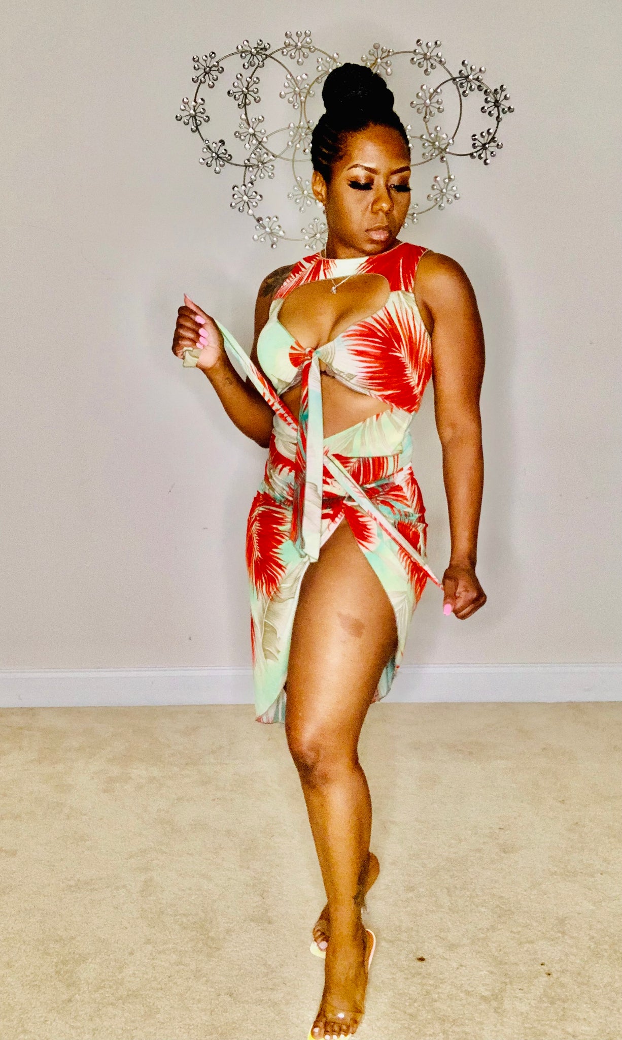 Front Cut Out Tie Swimsuit w/Wrap Skirt
